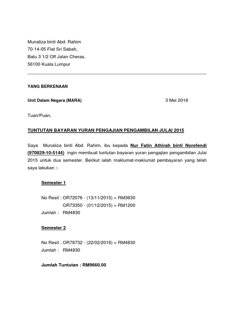Microsoft Word Surat Tuntutan Bayaran Semester Mara Pdf