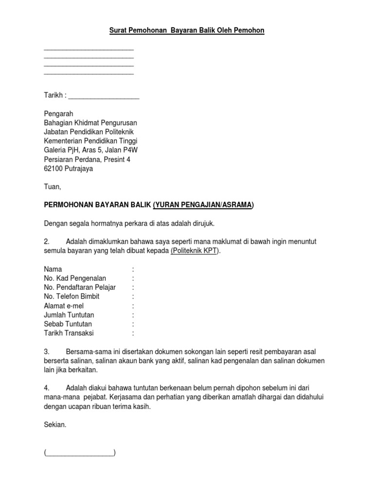 Surat Permohonan Tuntutan Balik Bayaran Pdf